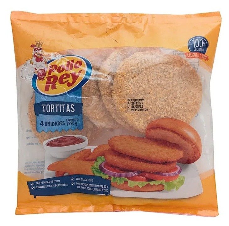 Tortitas de pollo Rey Disfruta de la mejor torta de pollo de la Pollo Rey. Esta deliciosa tortita de pollo de primera calidad está hecha con los mejores ingredientes para asegurar el máximo sabor y una textura suave. Esta torta de pollo viene en una unidad individual para que no tengas que comprar una caja entera. Esta tortita de pollo es altamente nutritiva, contiene una cantidad significativa de proteínas, así como vitaminas y minerales esenciales. Esta deliciosa torta de pollo es perfecta para aquellos que buscan agregar un poco de sabor a su dieta diaria.